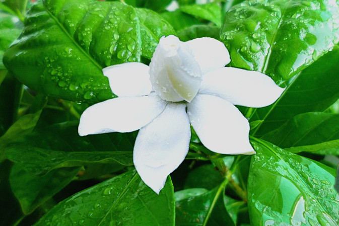 ? ? 哦,陽(yáng)臺(tái)上的梔子花開(kāi)了,花瓣潔白,芳香四溢,綠葉鮮脆,花萼重重,正對(duì)著我微笑。真好,梔子花開(kāi)了——心里滿滿的柔柔的,一下子就蕩開(kāi)了……