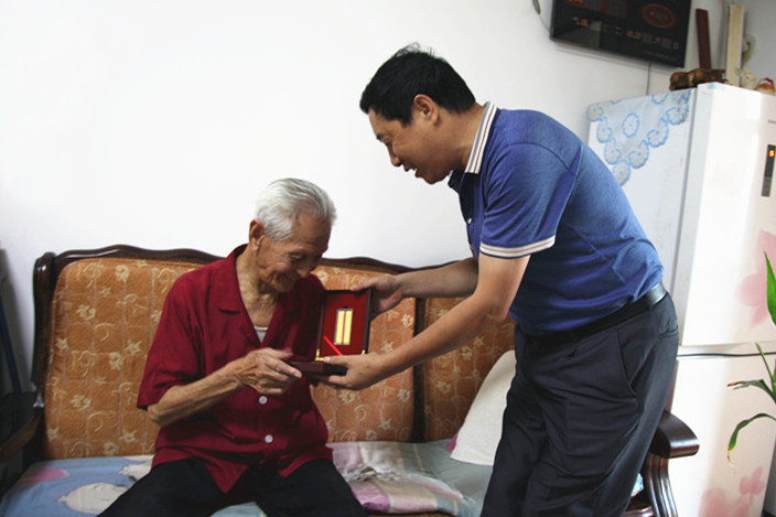 ? ? 黨委書記賀志銀先后看望了高登昌和余道元二位老人,每到一處,賀書記都親切詢問老人的家庭情況和身體狀況,并送上“中國人民抗日戰爭勝利70周年紀念章”和慰問金,向老同志致以敬意和問候,送上祝福,并叮囑隨行的有關部門負責人,要帶著感情做好老干部工作,對他們在政治上關心、生活上照顧,讓他們安享晚年。