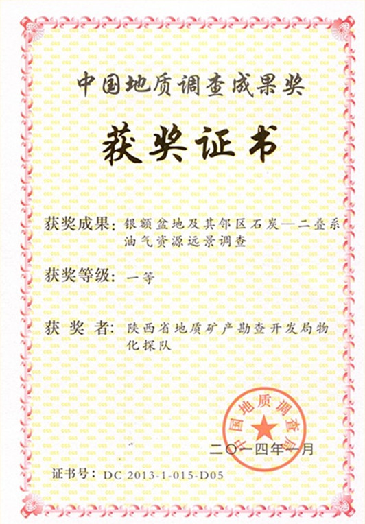 ? ? “銀額盆地及其鄰區石炭—二疊系油氣資源遠景調查項目”獲國土資源科學技術獎獲獎證書
