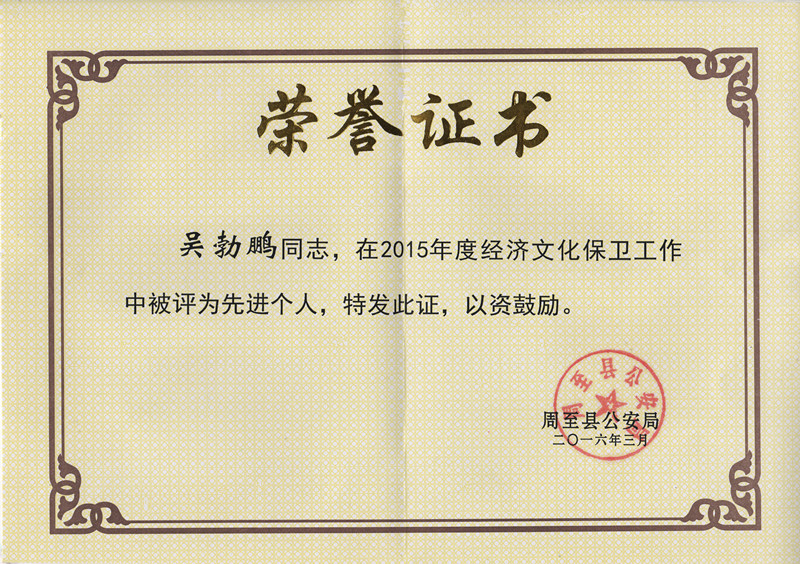 ? ? 物化探隊周至管理處,以周至縣積極開展創(chuàng)建“平安單位”活動為契機,以“保障單位安全,維護內部穩(wěn)定,促進社會和諧發(fā)展”為目標,持續(xù)推進內部治安防控體系建設,為經濟文化保衛(wèi)工作做出了貢獻。在3月23日周至縣公安局召開的《2015年度經文保工作總結表彰暨2016年工作安排部署會議》上,吳勃鵬同志被周至縣公安局評為2015年度經文保工作先進個人。